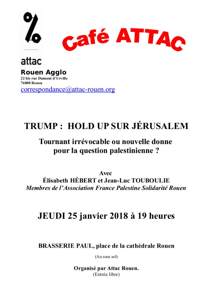 Café ATTAC / AFPS – Trump : Hold-up sur Jérusalem ?