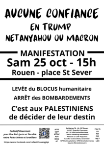 MANIFESTATION SAMEDI 25 OCTOBRE 2025 – 15h SAINT SEVER Rouen. PALESTINE LIBRE