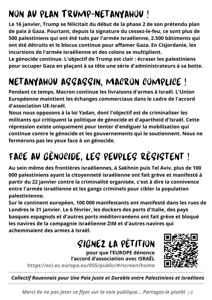 • SAMEDI 28 FEVRIER 2026 à 15H place Saint Sever Rouenn